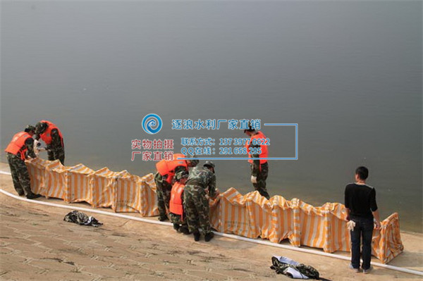 6、聯接:堵水墻節點與節點之間互聯串接,專用防水布的聯接處采用雙線逢合,面料內層經過防漏水技術處理,多個折疊堵水墻之間可進行無縫聯接。